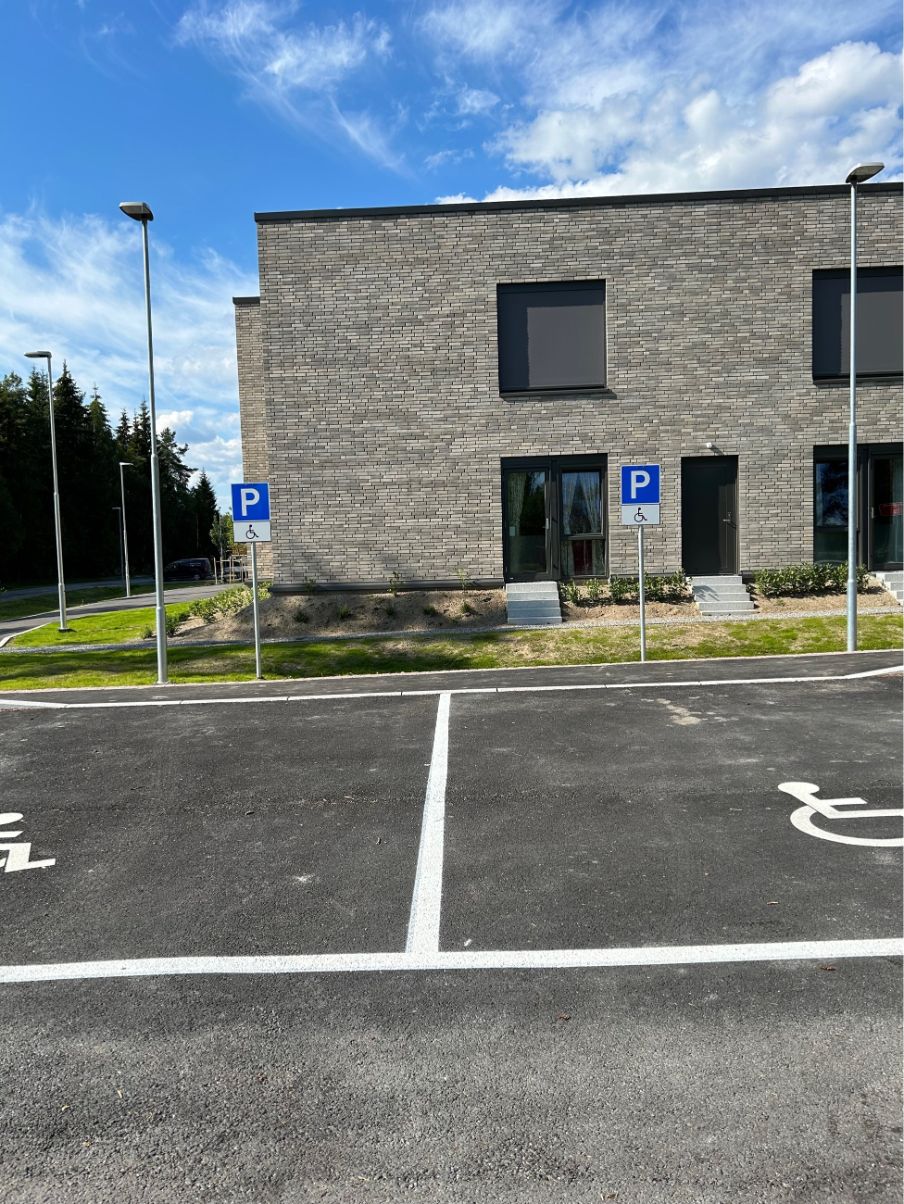 Utvendige arealer ble opparbeidet med bærelag, forsterkningslag og asfalt på veier, gangarealer og fortau. Vi har levert og montert kantstein, belegningsstein, smågatestein og grusarealer. Utomhusplanen ble fulgt med tydelig merking, skilter og HC-symboler. Plantefelt ble etablert med jord og et bredt utvalg av busker, trær og hekkplanter, inkludert frukt- og bærvekster. Gressplen ble lagt med vekstjord, og eksisterende trær ble beskyttet. Vi har også levert benker, fotskraperister, dyrkningsbenker, minidrivhus og sykkelstativ. Skjøtsel og vedlikehold av utomhusanlegget er inkludert i en 3-årsperiode.